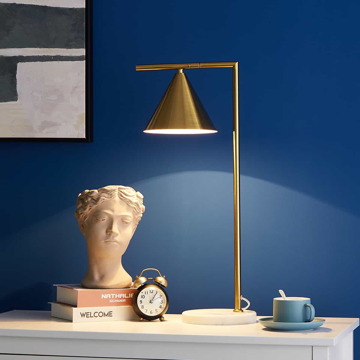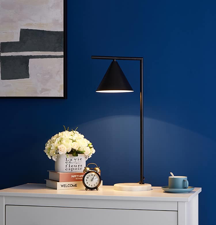 Whether placed on a study desk, bedside table, or console, the Jerlino lamp commands attention with its clean lines and distinct cone-shaped shade. Designed for those who appreciate understated luxury and modern aesthetics, it offers a soft, focused glow that’s ideal for reading, working, or relaxing.