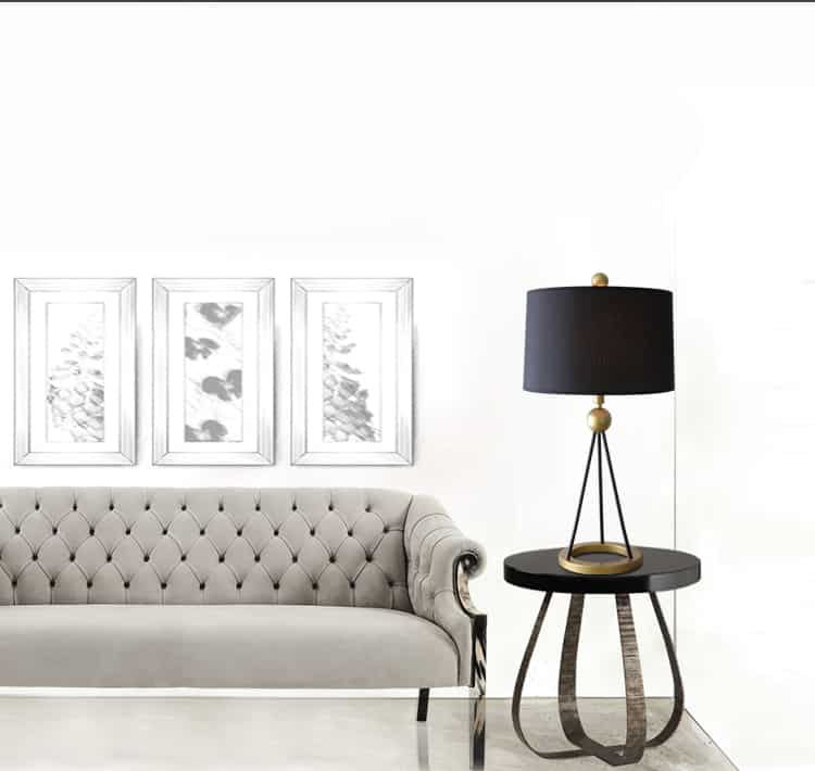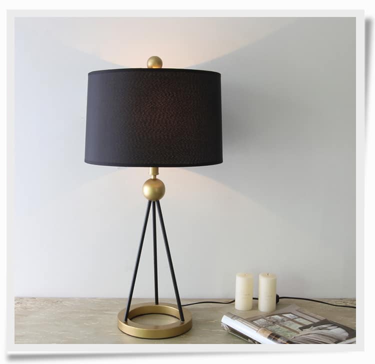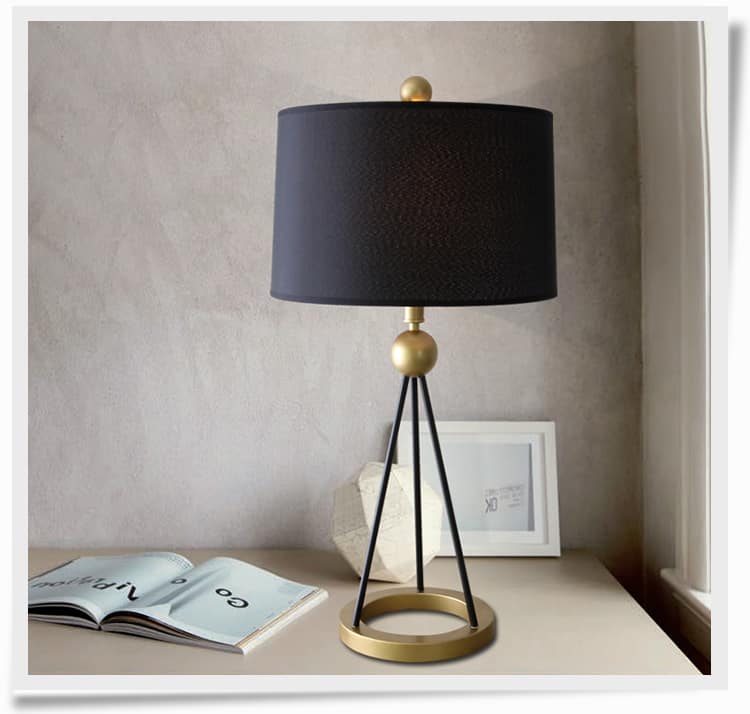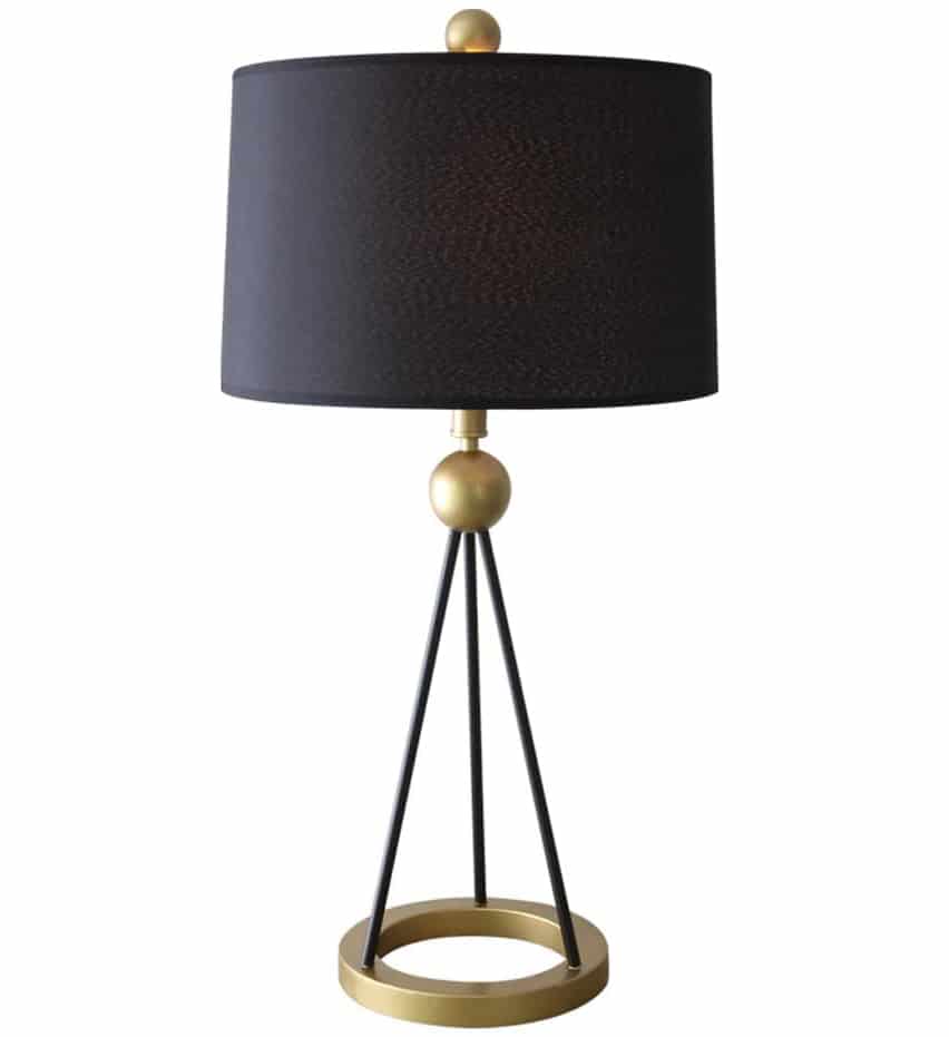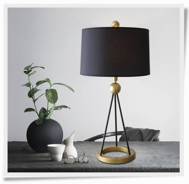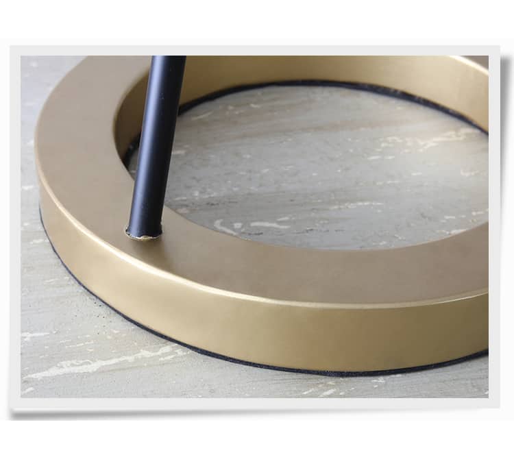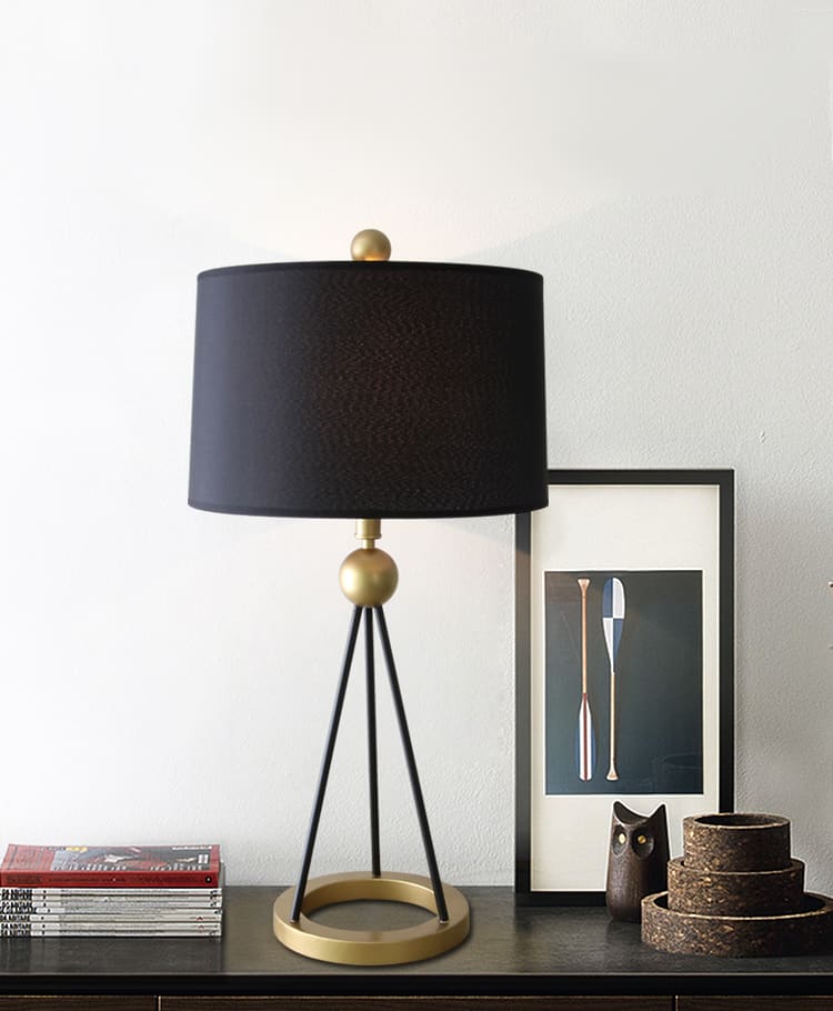 Featuring a tripod-style metal base with gold accents and a matte black ring frame, Ringocle delivers an elevated silhouette that draws attention without overpowering your space. The soft black fabric lampshade adds texture and a touch of sophistication while providing diffused, ambient lighting—ideal for evening reading or cozy lounging.