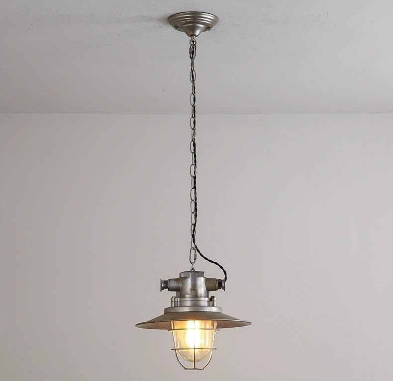 The Tumerook Industrial Cage Pendant Light combines vintage industrial character with a distinctive, eye-catching silhouette. Its wide, flared shade draws the eye while helping to direct light downward, creating a warm and focused glow. Beneath the shade, a clear glass enclosure is secured by a sturdy metal cage, giving the fixture its signature industrial charm and a hint of maritime style.