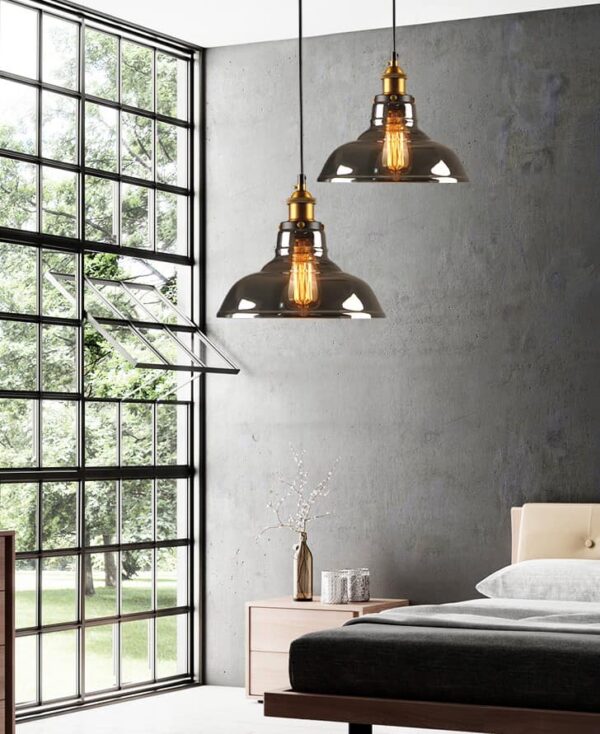 Glass pendant lamps with gold holder in various choices of glass colours available to match your interior colours!