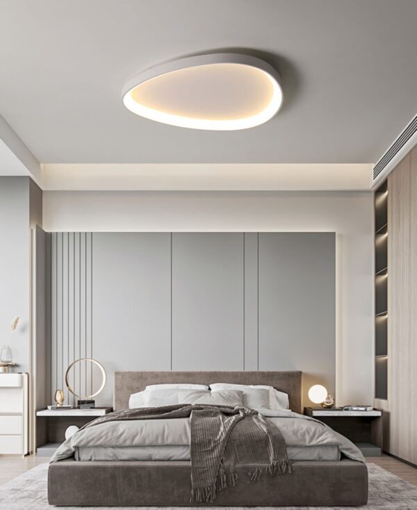 In a unique asymmetrical egg-shaped design, this slim and flat ceiling lamp with organic lines illuminates from within and will have your space lit up nicely. This ceiling lamp throws convention out the window. Its irregular shape resembles an egg that has been cracked open to reveal a golden yolk within. But don’t be fooled by its whimsical form—this lamp means business. Its organic design give it an edgy vibe, while the warm glow from within creates an inviting ambiance. Hang it in a home office, living room or dining area for an unexpected touch of modern art. When turned on, it casts an ambient glow perfect for cozy nights in. And when turned off, its sculptural silhouette still makes a stylish statement. If you’re looking to hatch an original idea for your space, this Wisdomegg ceiling lamp is one of a kind. After all, who says lighting fixtures have to follow the rules? Certainly not this lamp.