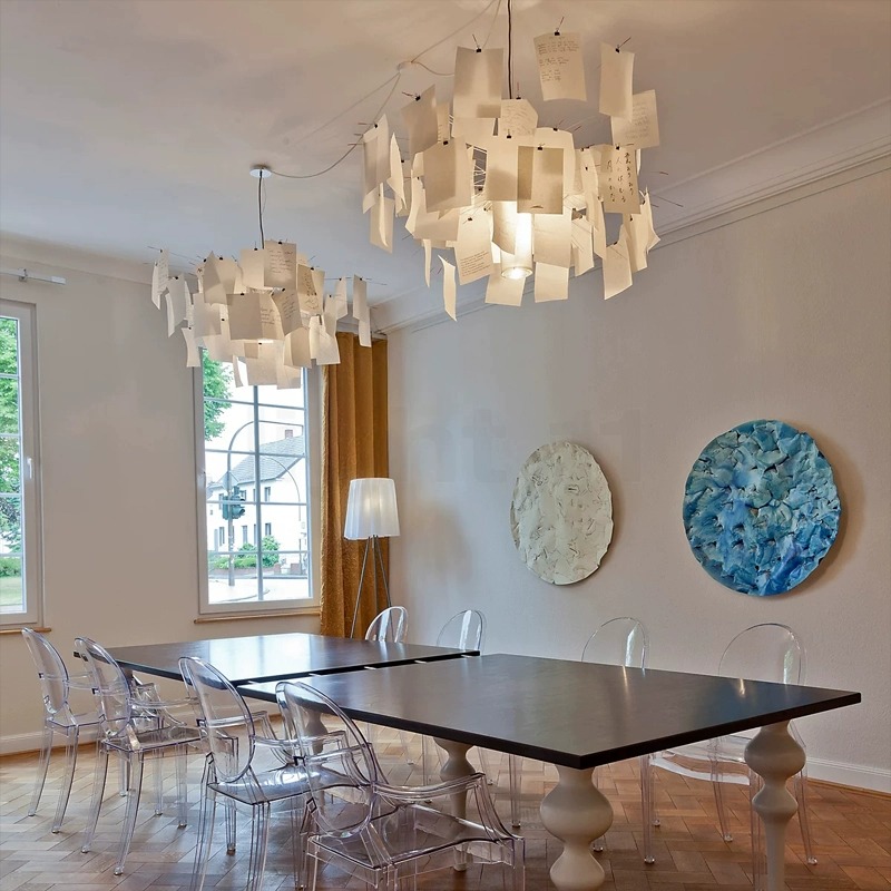 Add a creative touch to your space with the Zelmer Artistic Paper Notes Frenzy Chandelier Light – a unique and eye-catching lighting fixture that transforms any room into an artistic haven. Featuring a whimsical design inspired by scattered paper notes, this chandelier casts a soft, diffused glow, perfect for creating a warm and inviting ambiance. The playful arrangement of the paper-like elements adds a dynamic, modern twist, making it a statement piece ideal for living rooms, dining areas, or creative spaces. Imagine your room illuminated with this artistic chandelier, bringing both light and a sense of fun to your decor. Brighten up your home with the Zelmer Chandelier Light and enjoy the perfect fusion of creativity and functional elegance.